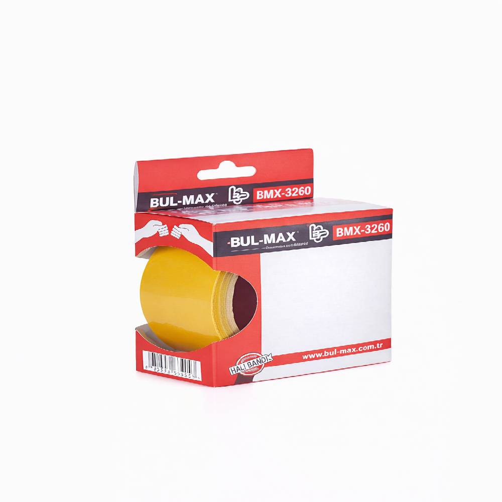 Bul-Max halı bandı, halı ve kilimlerin zeminde kaymasını önlemek için tasarlanmış, güçlü yapışkanlı ve uzun ömürlü çift taraflı banttır.