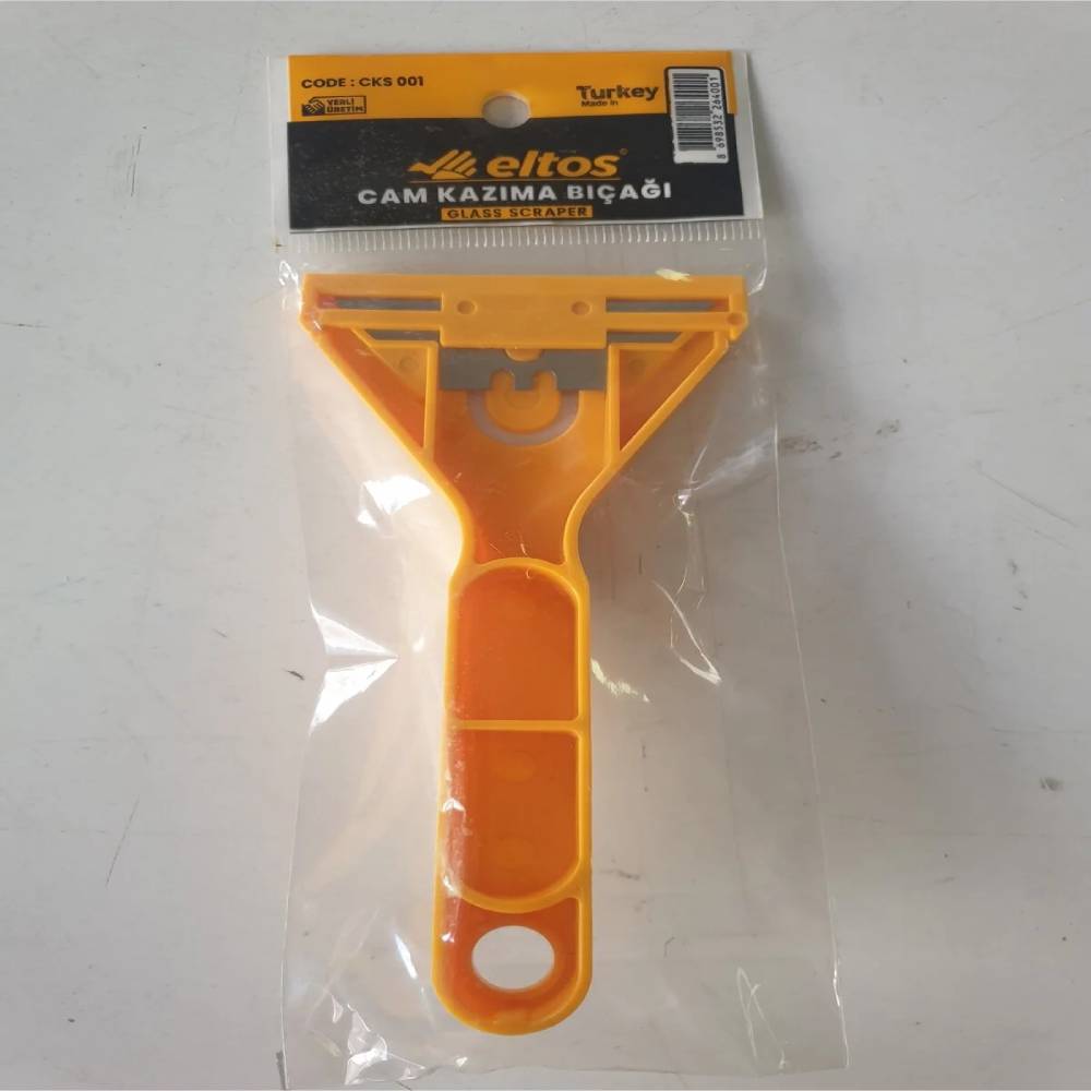 Eltos Cam Kazıma Bıçağı, cam yüzeylerde boya, etiket, kir ve yapışkan kalıntılarını hızlı ve çiziksiz şekilde temizlemek için tasarlanmış profesyonel kazıma aparatıdır.